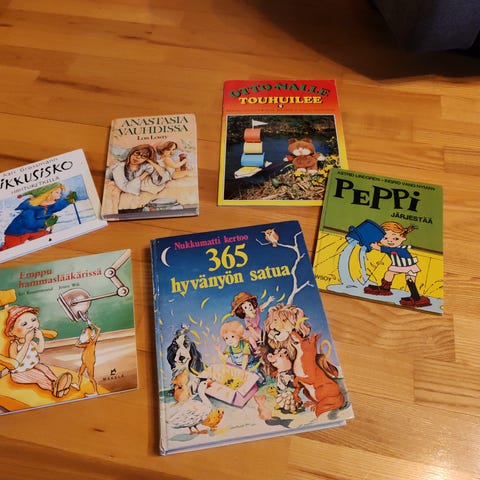 Annetaan kaksi hyväkuntoista Timo Parvelan Ella kirjaa: Ella ja Sampan urotyöt (141 sivua) sekä Ella ja kaverit lapsenvahteina (82 sivua).