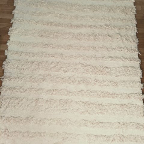Beigesävyinen uusi ja käyttämätön, iso ja kevyt puuvillakanvaasimatto ajattomassa kuosissa kodin moniin tiloihin.