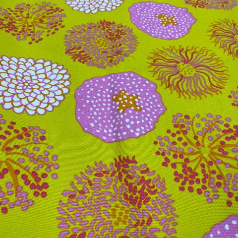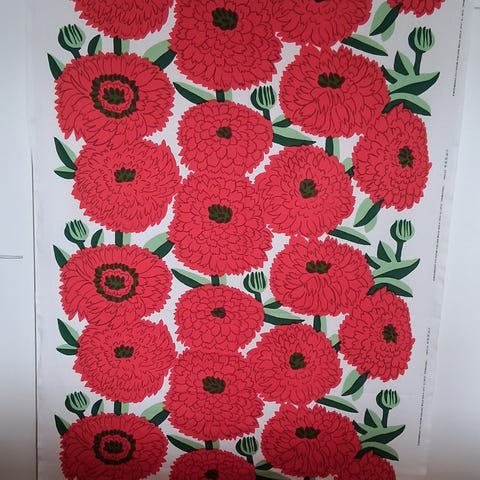 Marimekko Primavera kangas, joka soveltuu erilaisiin ompeluprojekteihin ja sisustuskäyttöön.