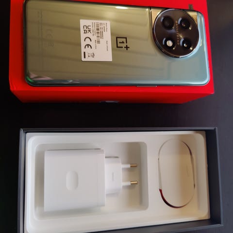 OnePlus 11 5g, tallennustila 256 GB. Väri vihreä. Mukaan myös kuvissa näkyvä erillinen lompakkokotelo (käyttämätön) ja 3x kameran linssin suojakalvoa. Puhelimessa käytössä sandstone-suojakuori ja näyttökalvo. Näyttökalvo ollut paikallaan koko ajan. Ei laturia. Vain nouto.
