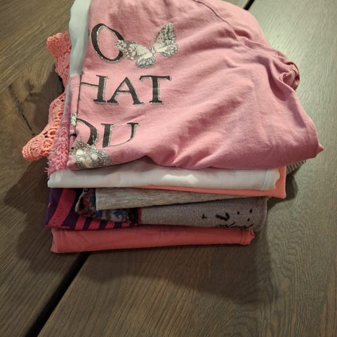 Valkoinen pepperts merkkinen, vaaleanpunainen lindex. Molemmat 146/152. Ehjät ja tahrattomat, hyväkuntoiset. Lindex paidan kuvassa pientä jälkeä perhosissa.
