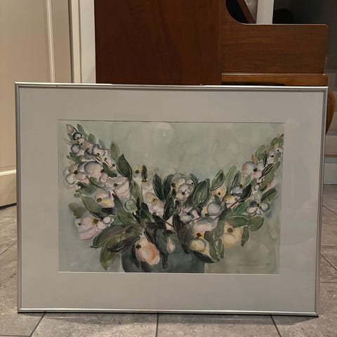 Minna Immonen Akvarelli kukka-asetelma juliste paspiksella ja kehyksellä