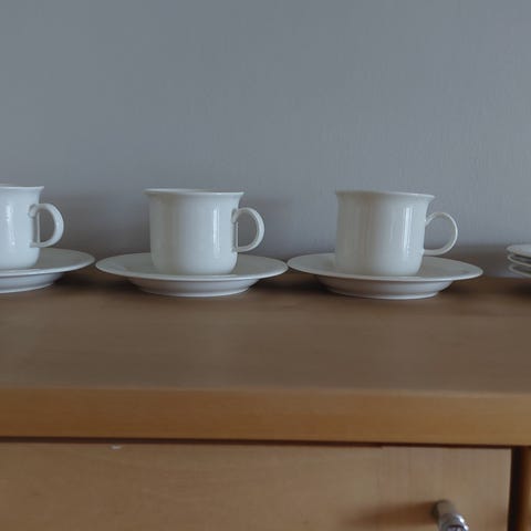 Kuin uudet Arabian Arctica kahvikupit ja tassit. Ei värjäytymiä tai kolhuja. Hinta koskee koko settiä. Postitus onnistuu ostajan maksaessa.