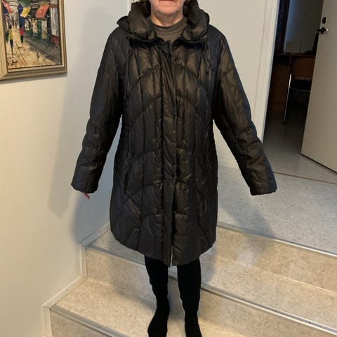Erittäin lämmin, täysin ehjä ja hyvälaatuinen takki. Huppu, samettinauhoilla. Tanskalainen koko 48.