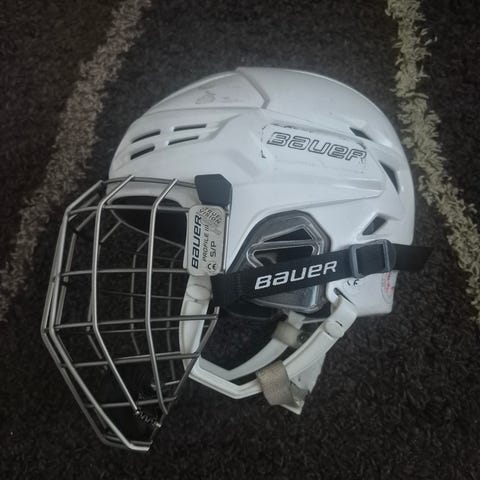 Bauer Re-Akt jääkiekkokypärä ristikolla. väri valkoinen. Koko S. Kerran kokeiltu todettu pieneksi. laadukkaat säätömahdollisuudet niskassa sekä päällä