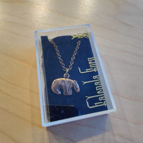 Pronssinen Kalevan karhu kaulakoru. Käyttämätön. Alkuperäisessä rasiassaan.