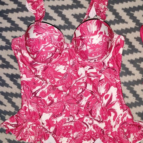 Erinomainen kunto, käytetty kerran rai kaksi, istuu kivasti, hoikentaa vartaloa. Säädettävät olkaimet, kuva leikkaus. H&M loppuunmyyty uimapuku.