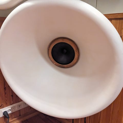 Lowther PM2A (8ohm) elementit ja 75cm halkaisijaltaan olevat lasikuitutorvet.