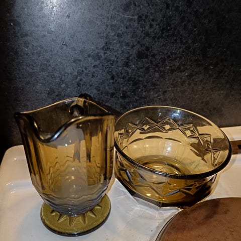 Karhulan lasitehtaan apilakuvioinen kermakko/ kaadin. Tuotannossa 1920- 1930. Retroa / antiikkia. Arviolta 100v vanha, mutta uudenveroinen. Hyvä paketointi.