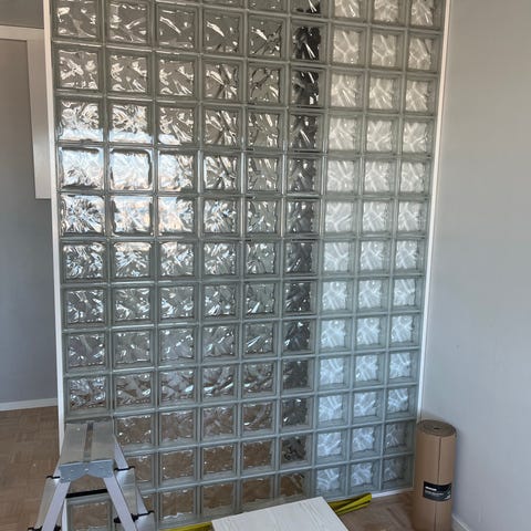 Myydään noin 64 (parit enemmän) kpl lasitiiliä, osassa reunoja laastirappausta joten joutuu jonkin verran niitä rapsuttelemaan.