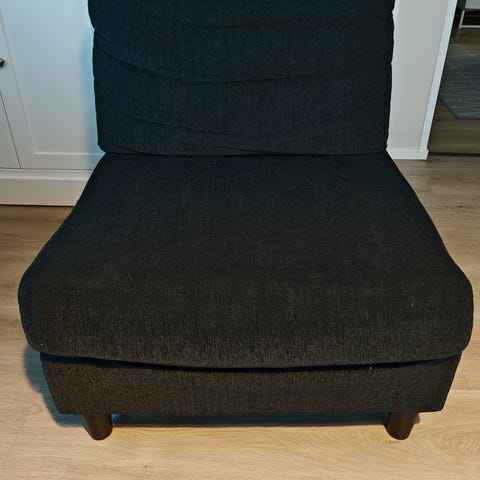 Myydään Ikean nojatuoli. Mustat ja valkoiset päälliset. Pohjaa vahvistettu laudoilla ks.kuva. Yleisilme siisti, mutta on pieniä vikoja, ei ole uusi.