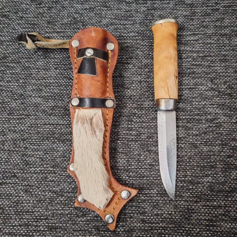 Myydään kuvanmukainen käyttämätön/ uusi retkipuukko. Puukko on ostettu v. 1998 ja ollut siitä alkaen yhdellä ja samalla omistajalla. Olisiko Marttiinin puukko sen muotokielestä päätellen.