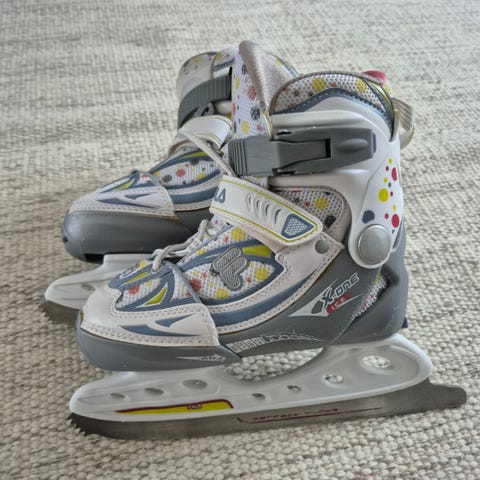 Säädettävät Fila X-One lasten luistimet, koko 29 - 32. Väri valkoinen harmailla ja monivärisillä yksityiskohdilla. Säädettävä kuorirakenne, jossa kiristettävä ristiin nauhoitus, tarranauha ja pikalukkokiinnitys. Terä on kiinteä ja soveltuu yleiseen luisteluun. Luistimet on suunniteltu lapsille ja tarjoavat tukea nilkalle sekä helpon koon säätämisen takana olevalla säätönapilla.