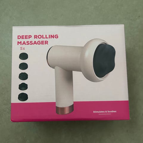 Hierontalaite, jossa sininen pyöreä yläosa ja kolme hopeanväristä jalkaa. Sopii esimerkiksi paikalliseen lihasten hierontaan ja rentouttavaan tärinähierontaan. Paristokäyttöinen malli (paristoja ei mukana). Pieni koko, helppo säilyttää ja kuljettaa.