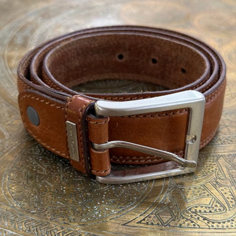 Chevignon miesten nahkavyö (”farkkuvyö”) ruskea. Vyö on sileäpintaista ruskeaa nahkaa ja siinä on metallinen suorakulmainen solki. Pituus 105 cm. Voi lyhentää kotikonstein avaamalla soljen ruuvin ja leikkaamalla vyön lyhyemmäksi.