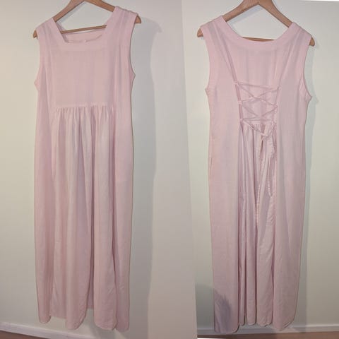 Myydään näyttävän värinen, ilmava äitiys- ja imetysmekko Pompkin Amelie Moka.