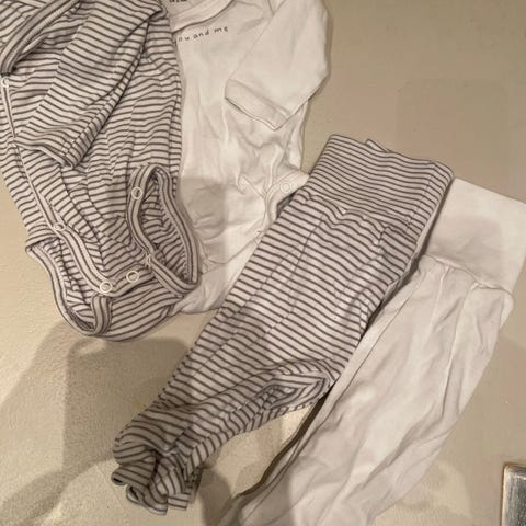 Pikkasen haalistunut musta body ja housut koossa 62.