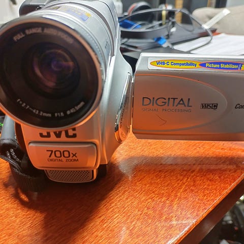 Myynnissä hyväkuntoinen VHS-C formaatin videokamera kahdella akulla ja laturilla. Mukaan saa myös yhden kasetin. Ei oo miniDV formaattia.