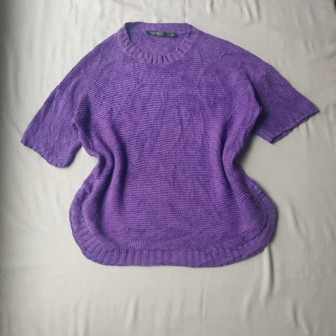 Ralph Lauren, Orange Knit, Short Sleeve Knit, Textured Knit, Designer, Casual Chic, Layering Piece, Vibrant Orange, lyhythihainen neulepaita, pintaneule, naisten neule, klassinen tyyli, laadukas