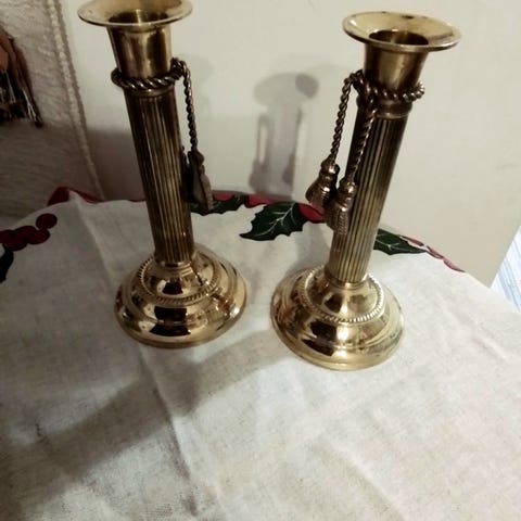 Hyväkuntoiset messinkiset kynttiläjalat 2 kpl. Korkeus n 19cm, jalus n 7cm x 7 cm.Mieluiten vain nouto Hki Töölö. Jos lähetys postituskulut ostajalle.