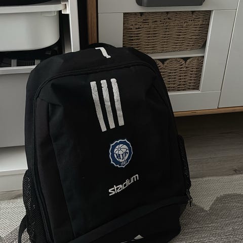Adidas musta futisreppu, jossa pelaajanumero 11. Pallolle tarkoitetun verkon voi myös sujauttaa taskun sisään. Reilun kokoinen reppu, johon mahtuu hyvin tavaraa.