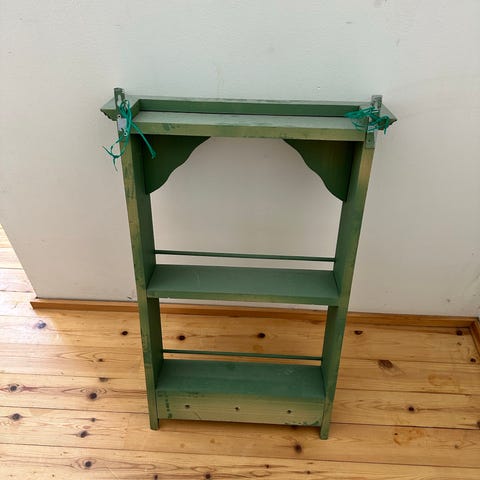 Hylly on itse tehty vanhasta ladonseinälaudasta – aitoa kierrätettyä puuta, kaunis rustiikkinen pinta.