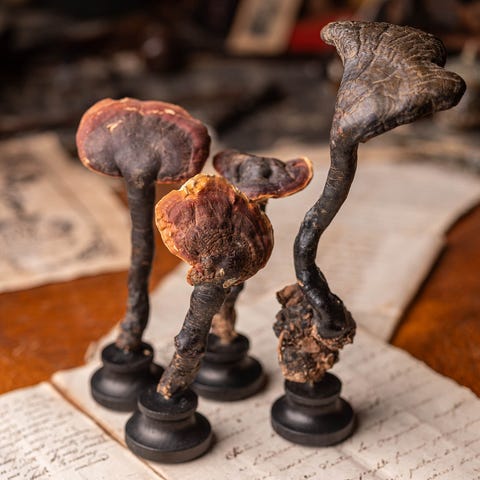 Old Illusionsin kokoelmassa tämä kyseinen näyte edustaa “Kuolemattomuuden sienen” ns. historiallista perintöä: se kertoo upeaa tarinaa siitä, miten yksi laji on kulkenut metsän varjoista keisarillisiin palatseihin, farmakopeoihin, laboratorioihin ja lopulta luonnonhistorian vitriineihin ja aina samassa, tunnistettavassa muodossaan. Loistava lisä vaikkapa noitakaappiin tai kummallisuuksien kabinettiin.