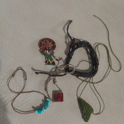 Joustava tannekoru tai nilkkakoru, helmet hieman helmiäisen punertavat. Ei lukkoa, vaan joustava nauha.