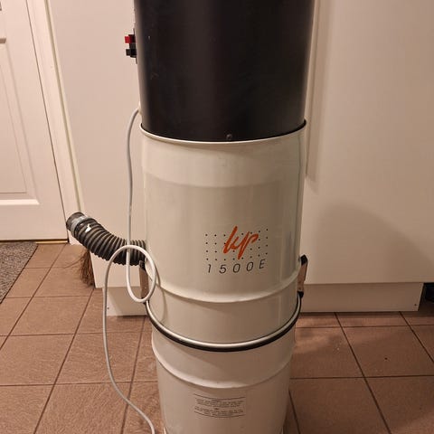 Talon mukana tullut keskuspölynimuri. Meillä ei ole ollut kertaakaan käytössä, edellisillä asukkailla toiminut. Mukaan kaikki kuvissa näkyvät osat ja tilpehöörät.