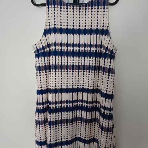 Uudenveroinen juhlamekko. Sininen mekko kauniilla päntiell. 3/4 puhvihihat. Joustava yllsa. Väljä malli. Kai-kai 46cm ja pituus olalta 82 cm.