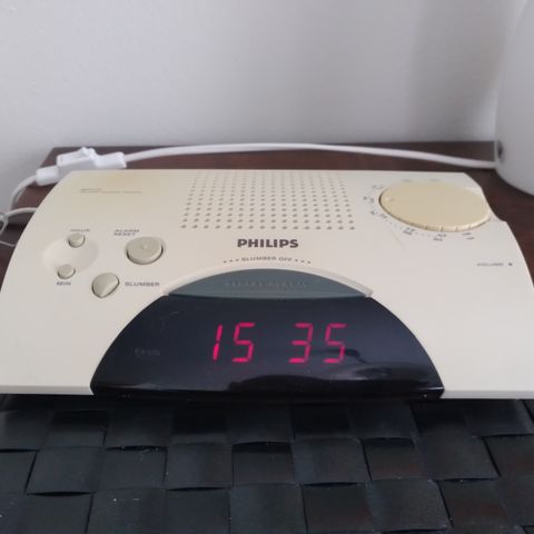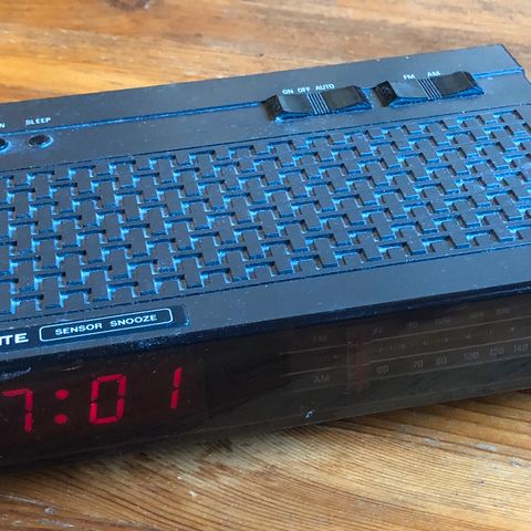 Toimiva kelloradio herätystoiminnolla, toimii myös pattereilla