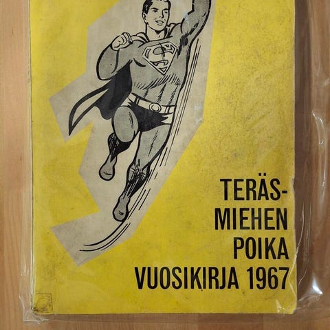 Kuka kumman poika? Mukana on niitä 60-luvun alun hämmentäviä "Teräsmiehen poika" -lehtiä. Kääntäjällä on selvästi ollut joko luovuus huipussaan tai logiikka hukassa, sillä eihän Teräsmiehellä mitään poikaa ollut – se on se sama sankarimme nuorena! Osta tästä pala suomalaista käännöshistorian sekoilua.