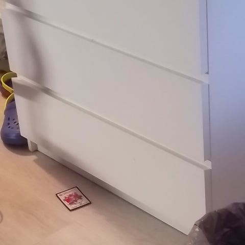 Lipastoon joskus kaatunut vettä, jonka se on imenyt itseensä ylimmän laatikon sisä ja ulkopuolelle.