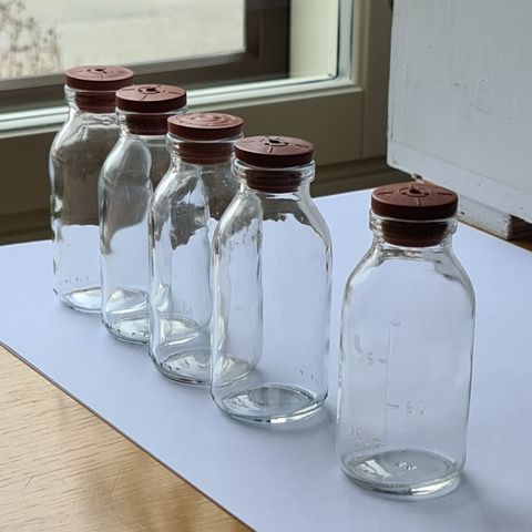 Myydään 2kpl ruskeita lasipulloja. Pienempi pullo ilmeisesti Karhulan lasitehtaan valmistama. Vain nouto