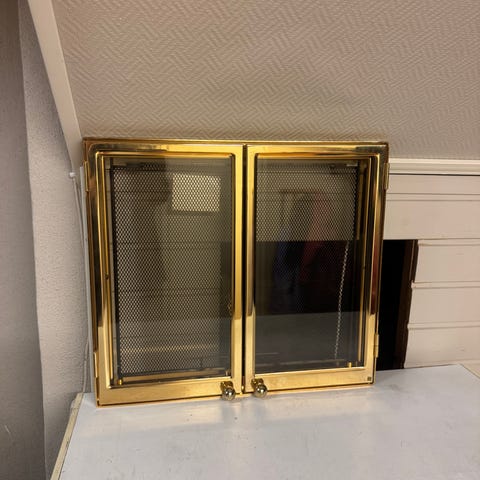 Kromin värinen umpiluukku kipinäverkoilla. Muuraus mitat 410mmx410mm
