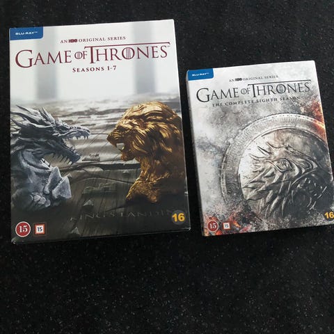 Levyt ovat teatterin omaisessa puulaatikossa. Kausien lisäksi extralevyjä. 33 bluray- levyä. Päällyspahvit ja alkuperäpaketti löytyvät siisteinä.