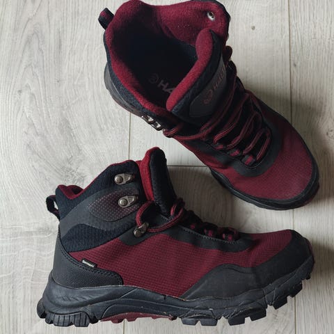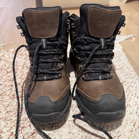 Haltin vaelluskengät. Jonkin verran piinttynyttä likaa mutta ehjät ja vedenpitävät Leveä lesti.