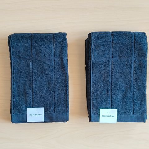 Vain hetken käytössä ollut Marimekko Tiiliskivi kylpypyyhe. Pyyhe on pesty kerran ennen myyntiä. Värinä musta-valkoinen.