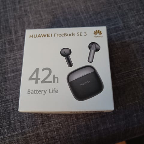 Huawei FreeBuds SE 3 -langattomat nappikuulokkeet. Bluetooth-kuulokkeet latauskotelolla, ilmoitettu akunkesto jopa 42 tuntia yhdessä kotelon kanssa. Pakkauksessa kuulokkeet ja latauskotelo, USB-C-latausliitäntä. Avaamaton pakkaus (muovitkin vielä pakkauksen ympärillä), joten ovat hygieeniset/puhtaat! Itselle tarpeettomat.