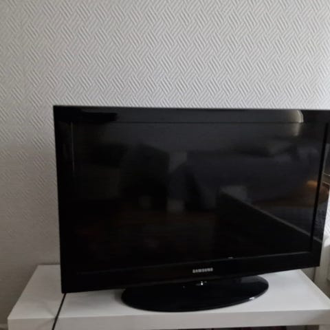 Televisio on 75.5 cm leveä ja 45 cm korkea. Itse kuvanäyttö on 69.5 cm leveä 39.5cm korkea. Hyväkuntoinen 2 HDMI kaapeli paikkaa ja kanavat toimii antennijohdolla