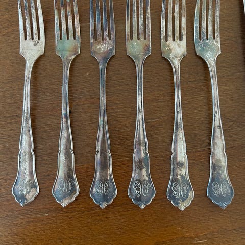 Täyshopeiset, Tähkä-sarjan leikkelehaarukat 6 kpl.