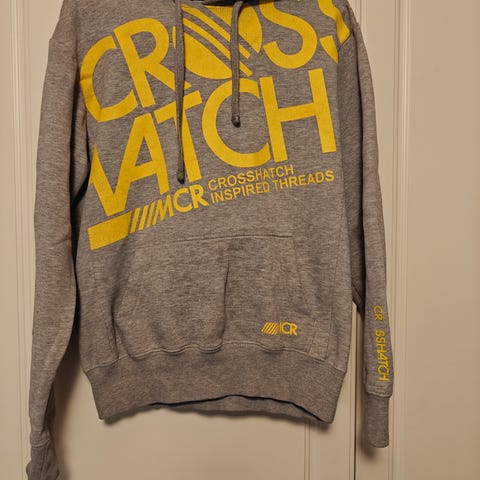 Kuvanmukainen musta Caterpillar merkkinen collegetakki.