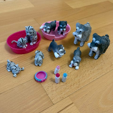 Kissa kahvittelu setti sisältää 3 kahvikuppia,1 isomman lautasen, 4 tassia, kermakon, kannellisen kipon ja vara kannen. 1 kuppi kaipaa liimaa, kaikki kupit kellastunut ja tasseissa naarmuja.