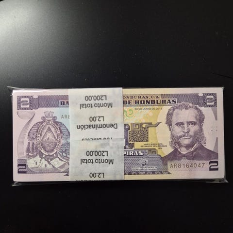 Kaikki niput / paketit ovat alkuperäisiä ja peräisin kokonaisista palikoista. Setelit ovat kaikki käyttämättömiä. Sarjanumero tai sarjan kirjain voi poiketa valokuvassa näkyvästä.Koska ne ovat kokonaisia nippuja, joissakin seteleissä saattaa olla pieniä merkkejä nipun omista merkeistä.Katso kuvia saadaksesi oikean käsityksen erästä ennen kuin osallistut huutokauppaan.Onnea!!!