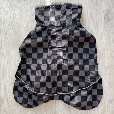 Säädöt kauluksen ulkoreunassa sekä kaulan kohdalla. Säädettävä vyötärö sekä jalkalenkit. Foliopainettu siäpuoli heijastaa koiran kehon lämpöä takaisin.