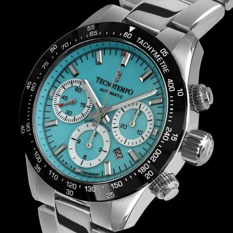 Tecnotempo on italialainen tuotemerkki ja rekisteröity tavaramerkki.Tecnotempo on italialainen brändi, joka yhdistää laadun ja muotoilun jokaisessa kellossa – niille, jotka arvostavat ajattoman tyylin.Jokainen malli, joka on valmistettu korkealaatuisista osista, edustaa täydellistä kohtaamista perinteen ja innovaation välillä, niille, jotka elävät aikaa tyylillä.Tässä huutokaupassa tarjoamme:Tecnotempo - "Chrono Round" *Suunniteltu ja koottu Italiassa* - Sveitsin automaattinen koneisto - Rajoitettu erä 100 kpl - 200 metrin vedenkestävyysTämä juuri markkinoille julkaistu uusi malli on tällä hetkellä myynnissä yksinomaan Catawikissa, koska me olemme tuotemerkin omistajia.Uusi, kotelolla ja kahden vuoden virallinen takuu.Swiss Automatic Movement Landeron 73****TÄRKEÄÄ: Huomaa, että tämän Landeron-automaattisen kronografin liike voi kuulostaa kovalle, jos automaattisen liikkeen heiluri paino pyörii nopeasti.****Kotelon läpimitta on 41 mm ( ilman kruunua ) ja paksuus 16 mm.Ruostumaton teräs 316LAutomaattinen kronografi (enintään 30 minuuttia, 12 tuntia)Safiirikristalli3 ruuvikruunuaKiinteä musta keramiikkakehä200 metriä (20 ATM) vesitiivisPäivämäärä (välttääksesi mahdolliset vauriot kellon mekanismiin, älä muuta päivämäärää tai päivää manuaalisesti kruunulla, jos kellon aika on välillä klo 20:00 ja 03:00. Tämä on sääntö, joka pätee kaikkiin päivämäärällä varustettuihin kelloihin).Upea vaaleansininen kellotaulu, jossa valkoiset pyöreät kohokuvioidut laskuritRuostumattomasta teräksestä valmistettu kotelo 316LMusta aito nahkainen ranneke, valmistettu Italiassa.Rajoitettu erä 100 kappaletta.Kotelon halkaisija: 41 mm (ilman koko kruunua)Kotelon paksuus: 16 mmKaistanleveys: 20 mmVedenkestävä: 200 metriä (20 ATM) ja kolme ruuvattavaa kruunua.Kellon ympärysmitta on noin 21 cm.Paino: noin 105 g.Laatikko, takuu ja käyttöohjeTavarat pakataan huolellisesti ja lähetetään Italiasta kuriirilla (seurattuna ja vakuutettuna).