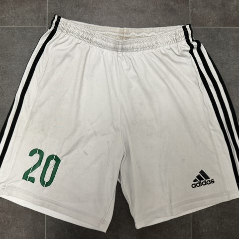 Kuvien mukaiset valkoiset Adidaksen miesten shortsit , urheilushortsit , jalkapallosortsit . Liukasta kangasta olevat shortsit miehelle tai nuorelle pojalle , nuorten tai miesten shortsit .