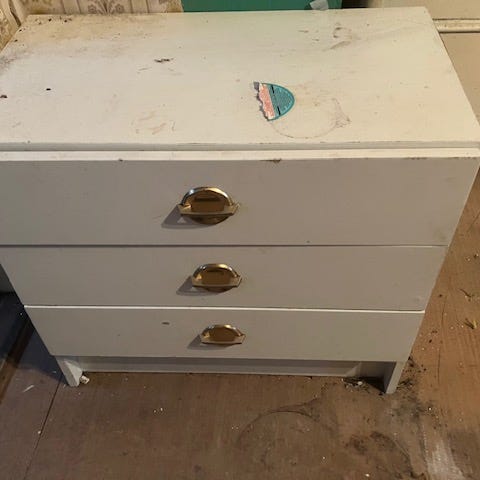 Maalattua kalustelevyä. Kunto on hyvä. Siisti sisältä. Pientä käytön jälkeä. Päällitasossa etuosan kaistale on hiukan kirkkaampi/kiiltävämpi. Pari mustaa pientä jälkeä.