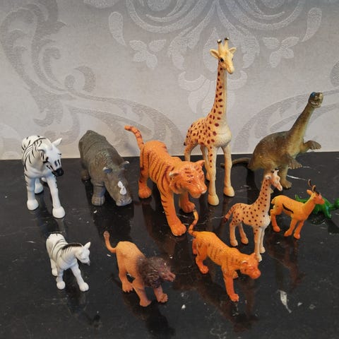 Erä leluhahmoja ja tavaroita. Hahmosetti 4e/kpl ja tavarasetti 3e/kpl