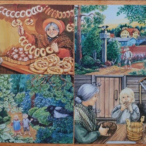 Ruotsalaisen Signe Aspelinin piirtämiä postikortteja